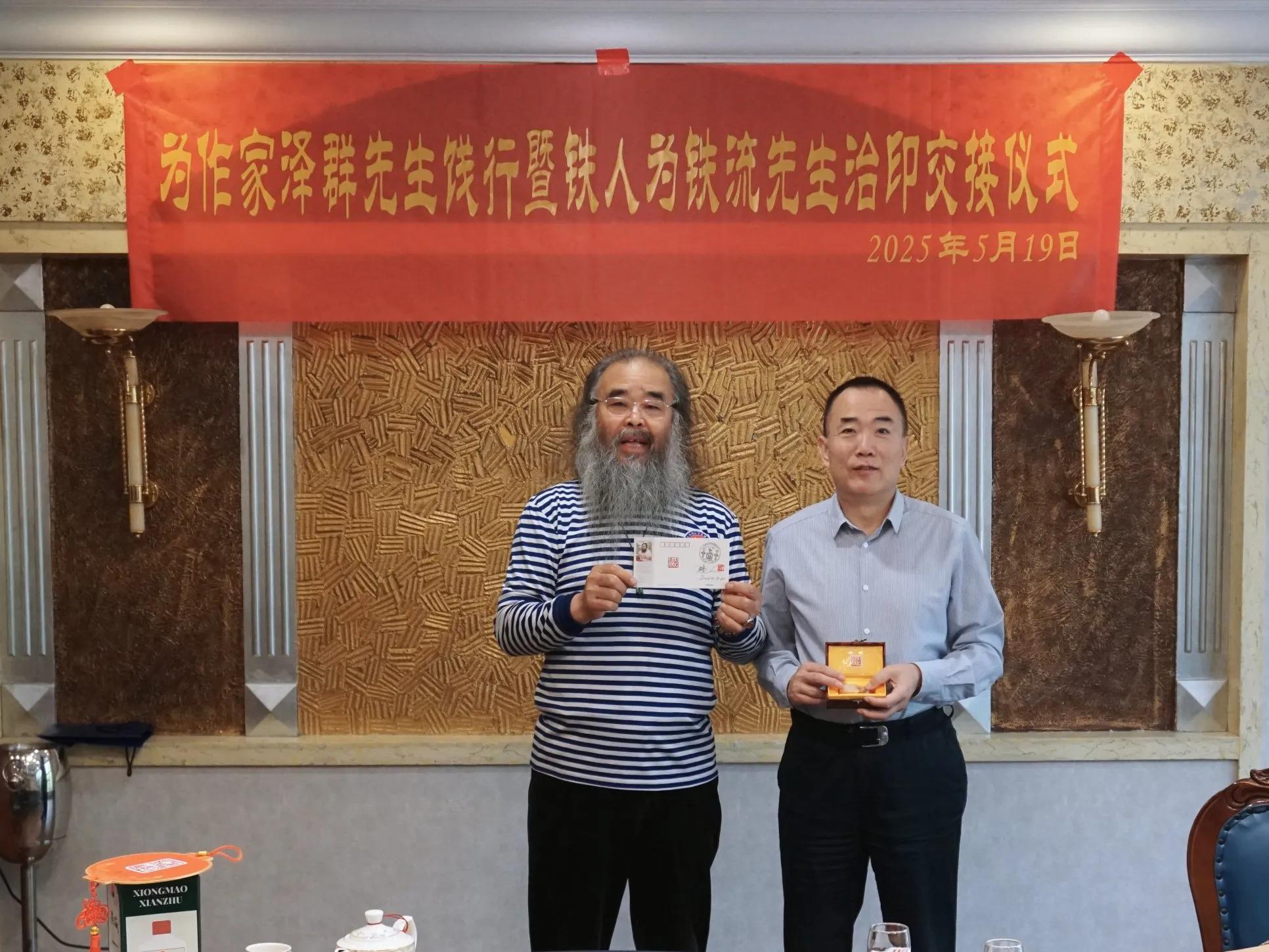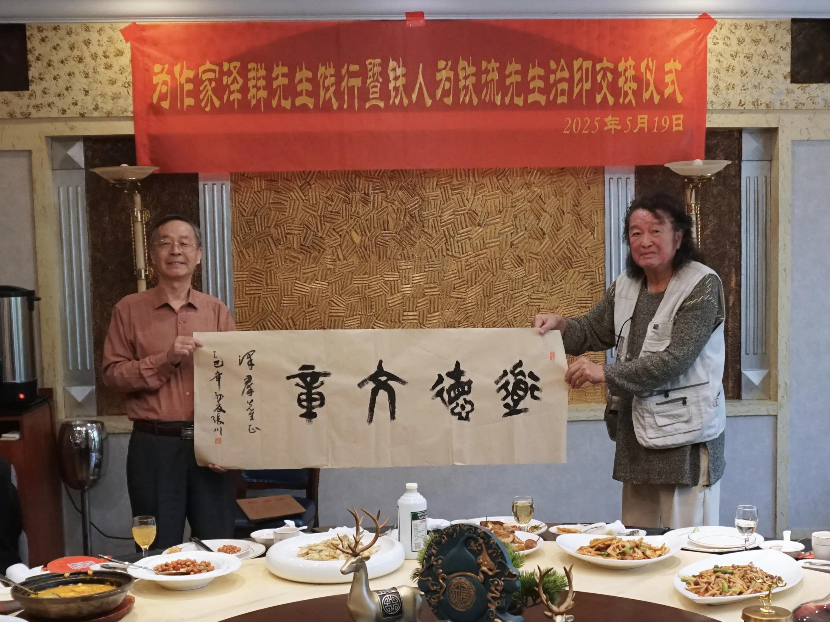 中国禅文化艺术研究院张川院长,为王泽群先生、铁流先生,赠送了自己书写的篆书墨宝。摄影师姜毅先生抓拍留念,将美好的瞬间定格在永恒的记忆中。!